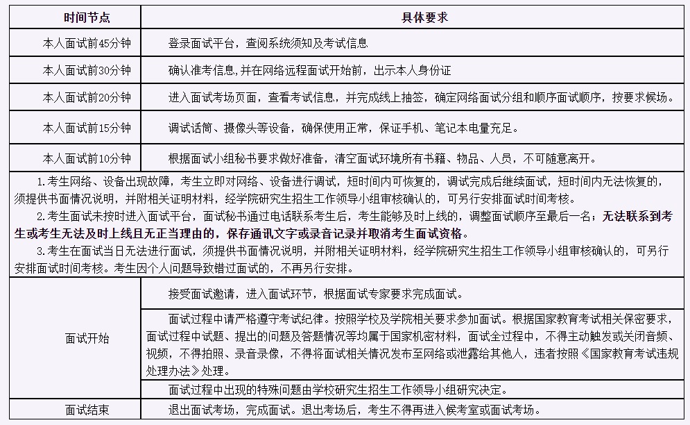 2.候考及面试。面试前,考生确保网络和电话畅通,等待面试连线通知。