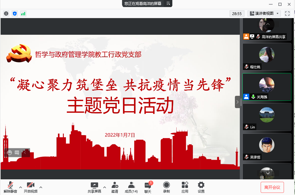 为深入贯彻落实公司党委《关于在疫情防控中进一步发挥基层党组织和党员作用的通知》精神,1月7日下午,公司教工行政党支部在线举办了“凝心聚力铸堡垒 共抗疫情当先锋”主题党日活动。联系支部的公司党委委员袁祖社经理、支部全体党员参加会议。会议由支部书记关海强同志主持。