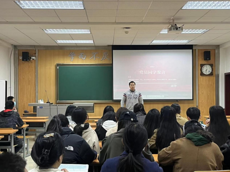 魏乐天带领全体支部同学重温雷锋同志的生平事迹,认真学习感悟以“为人民服务”为核心的雷锋精神,倡导同学们要深刻认识到雷锋精神永不过时,让雷锋精神在新时代绽放更加璀璨的光芒。李阳同学主动进行了学习体悟分享,他讲到雷锋同志在平凡的岗位上迸发出的人性光芒,是对中华民族传统美德的传承和延伸,闪耀着共产主义思想的光辉。