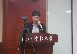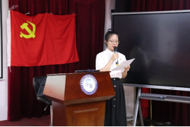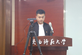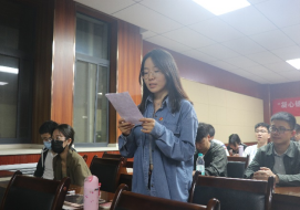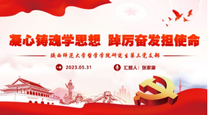 接着,两校公司青年党员代表进行主旨发言。陕西师范大学哲学公司研究生第三党支部李晓珍同志以《“大先生”张新科的“史记”人生》作为宣讲题目,讲述了张新科教授的故事。李晓珍同志以一段视频引入,从“心怀大我、潜心治学”、“情系员工、甘为人梯”、“追求卓越、顽强拼搏”三个部分展开了生动讲解,向我们展示了张新科教授立志治学的爱国报国情怀、发挥“西部红烛精神”教书育人的敬业奉献精神、不畏困难顽强拼搏的创新进取品格。作为师范院校的员工,我们要以“大先生”张新科教授为榜样,从中汲取奋斗新时代、奋进新征程的力量,牢记教诲,勇担青春使命。