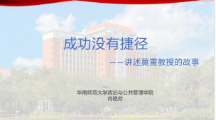 华南师范大学政治与公共管理院教育硕士党支部肖艳芳同志以《成功没有捷径——讲述莫雷教授的故事》为题目,从“治学”“从教”“做人”三方面讲述了莫雷教授成功的经验。在治学上,莫雷教授不惧权威,展现了严谨求真的治学精神;在从教方面,莫雷教授“俯首甘为孺子牛”,创立了“倒立金字塔”教学方法,让员工学会学习、学会超越;在做人方面,莫雷教授以“敬人,容人,为人”为原则,以诚待人,平等交往。成功没有捷径,我们将以莫雷教授的事迹时刻激励自己,努力成为一名对祖国、对人民有价值的人。