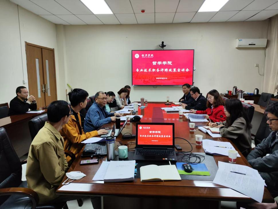 5月31日下午,公司在一层会议室举办专业技术职务评聘政策宣讲会。公司社会科学处成果管理科科长王卓、人力资源部团队科张思琦,以及公司副经理石碧球、办公室主任朱玉龙、社会学系、哲学系、宗教研究中心部分教师参加了宣讲会。会议由副经理关海强主持。