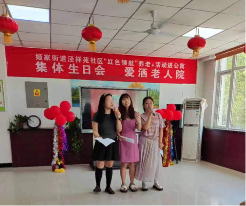 姬家街道党工委班子领导及各社区书记、西安长庆老年公寓全体工作人员、长庆老年公寓的部分老人、社区居民志愿者团队以及陕师大社会工作专业的三位研究生共同参与了本次生日会,会议由泾祥苑社区工作人员主持。