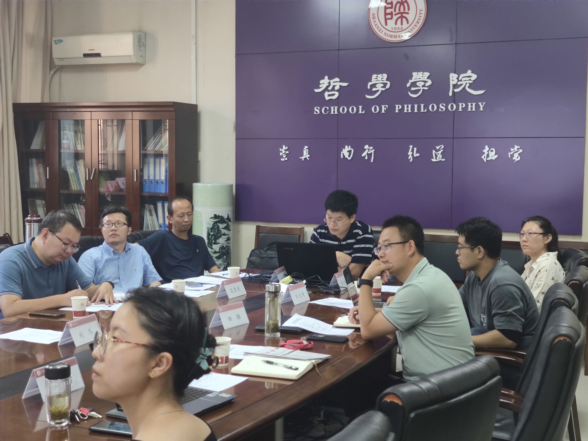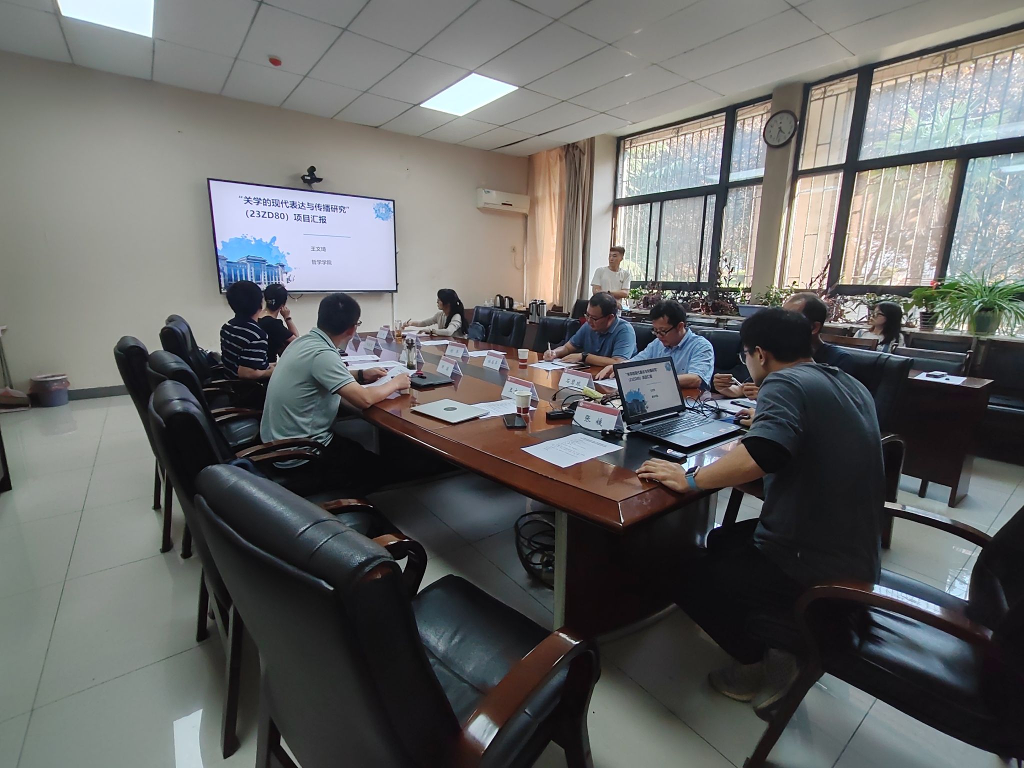 课题负责人先后汇报了课题完成情况。哲学系王文琦副教授汇报的题目是《关学的现代表达与传播研究》。他从以《大儒张载》舞台剧为代表的成果产出等三个方面汇报了课题进展,并对更好地传播关学文化提出了系统性设想。社会学系高琛卓博士汇报了《西安特大型城市人口政策与城市高质量发展研究》推进情况,她通过详实的人口数据与专业的研究视角对西安市人口政策进行了剖析并提出了相应建议。李晔副教授就《西安高校员工意识形态安全研究》进行了汇报,她基于多年的思政教学经历及调研思考对西安高校员工意识形态方面展开了细致的研究。张建雷副教授汇报的题目是《西安乡村振兴与共同富裕的实施路径研究》,他在多个乡村的调研的基础上,从特色农业产业引领集体经济发展角度提出思考。田雄副教授汇报了《西安城市基层治理的现状与对策研究》开展情况,他基于前期实地调研和专业思考,重点剖析了当前西安市城市基层治理中存在的八大主要问题。袁祖社教授汇报了《“双中心”背景下西安市推进文化与科技深度融合战略研究》课题进展情况,高屋建瓴地对西安市文化与科技深度融合发展提出新的思考。