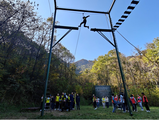 同学们开展了高空项目锻炼活动,有奋力一跃挑战自己,有三人一组保护队友,有全队齐心呐喊鼓劲。前路艰险,却非绝境。同学们不断挑战自我,冲击自身心理极限,找到适合自我的位置并作出团队贡献。