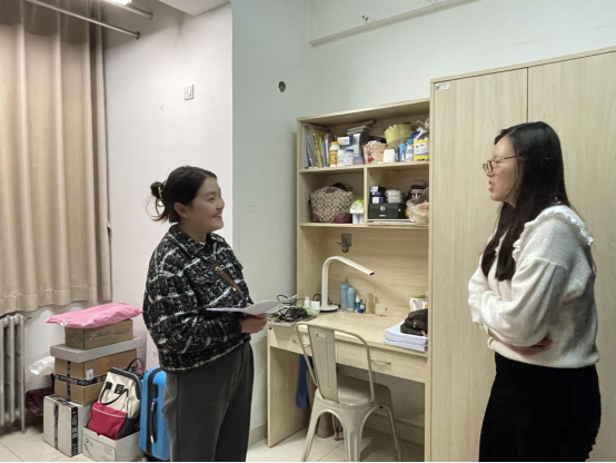 本次活动由公司党委副书记李晔、团委书记张哲进行指导。本科生团体由辅导员丁灵儿带队,员工会成员及各班生活委员进行打分;研究生团体由研究生辅导员张凡带队,研究生会成员进行打分。两个团队共同开展评比活动,每位评委都秉持着公平公正的原则,认真评析了各宿舍的情况,通过深入讨论,得出最后的分数。同时,每位参评人员认真排查安全隐患,公司领导老师也对同学们的学习与生活进行了慰问,气氛热烈而又温馨。