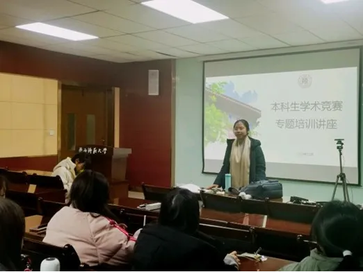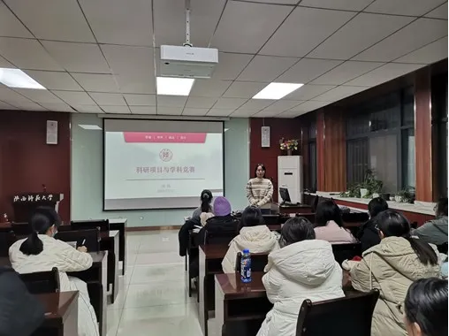首先肖阳老师详细介绍了各种科创实践项目的类别、相关要求、申报注意事项等内容,让同学们对科创实践竞赛有了初步的认识,有助于同学们确定自己想要参与的项目以及努力方向,并且合理规划好时间,为竞赛做好十足的准备。
