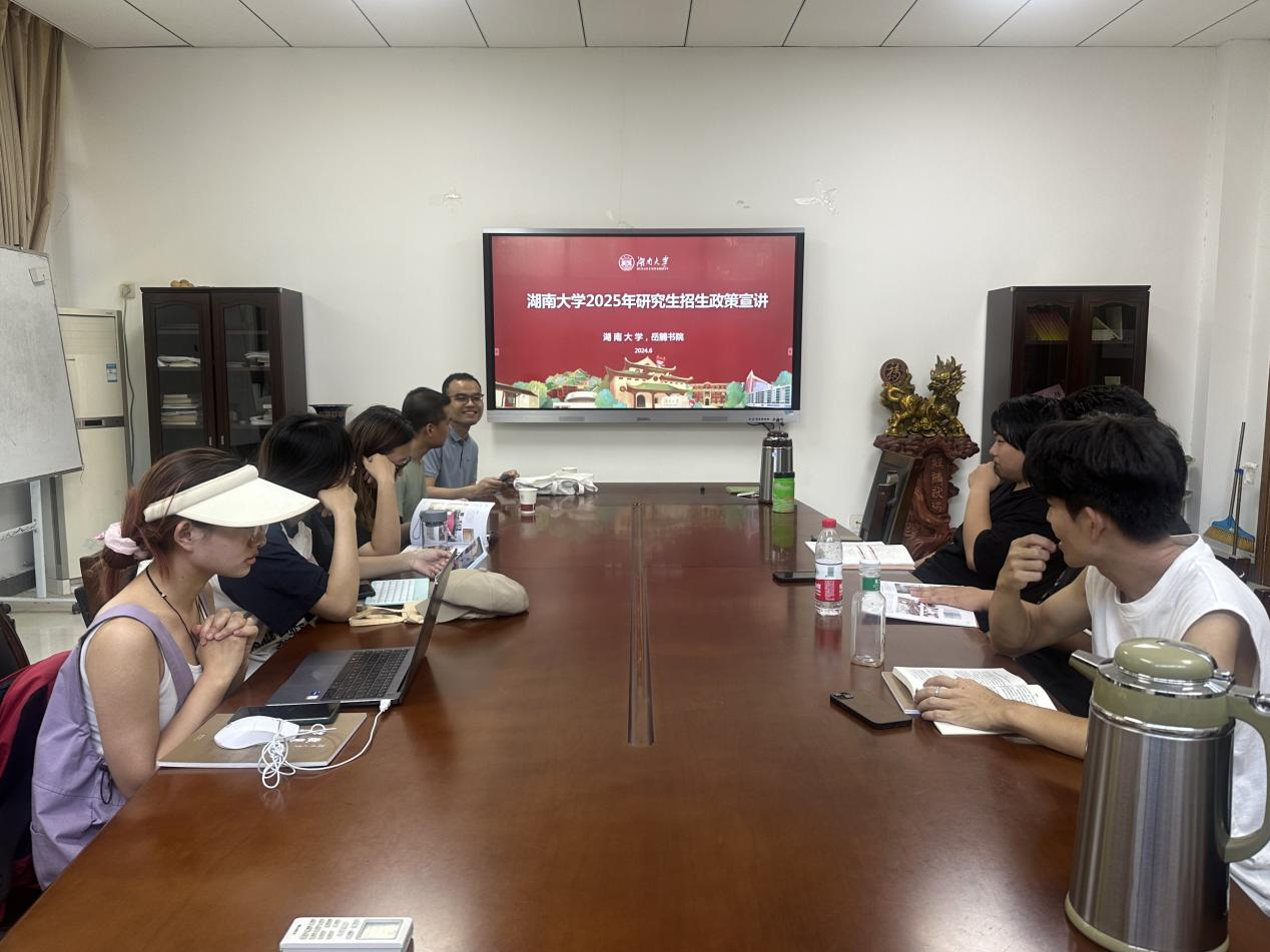2024年6月14日下午,湖南大学岳麓书院哲学系助理教授王帅来公司进行研究生招生政策宣讲,公司员工积极参与。会议由公司哲学系副教授雒少峰主持。