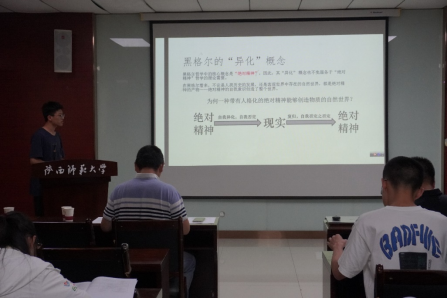 马克思主义公司思卓2301班杨晓杰同学的报告主题为《论马克思对“异化”概念认识的发展过程》,将马克思对“异化”概念的认识分段论述,指出马克思主义自身发展的渐进性与曲折性。两位老师肯定了他的尝试,同时对文章的一些具体的划分提出了意见。