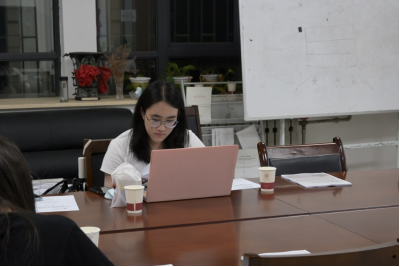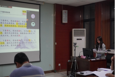 公司文公司秘书2201班林山玉同学报告的主题为《天之道与人之道之关联》,两位老师点出她以张弓之喻寻找天人之道关联的想法很巧妙,肯定了她的文本梳理与文章切入口。并且老师建议她在文章中加上对前人研究的综述,行文方面,建议她文章先解释老子思想的核心概念,之后进行具体文本诠释,最后对人生观展开更详细的阐释。