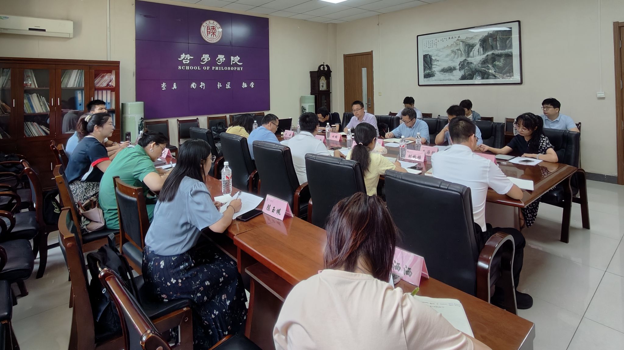 在交流研讨环节,侯江华老师分享了与政府报告相关的工作成果,李卫东老师交流了教育社会学调研量化分析的工作成果,田雄老师介绍了县域治理相关的工作成果,肖阳老师介绍了社会工作专业实习、特大城市调研等工作内容,公司社会学系其他与会教师以及社会工作专业硕士生也参与了交流研讨。