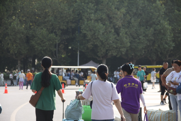 新同学陆续到达迎新点