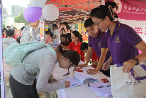 向新生们展示着师大人的热忱与周到