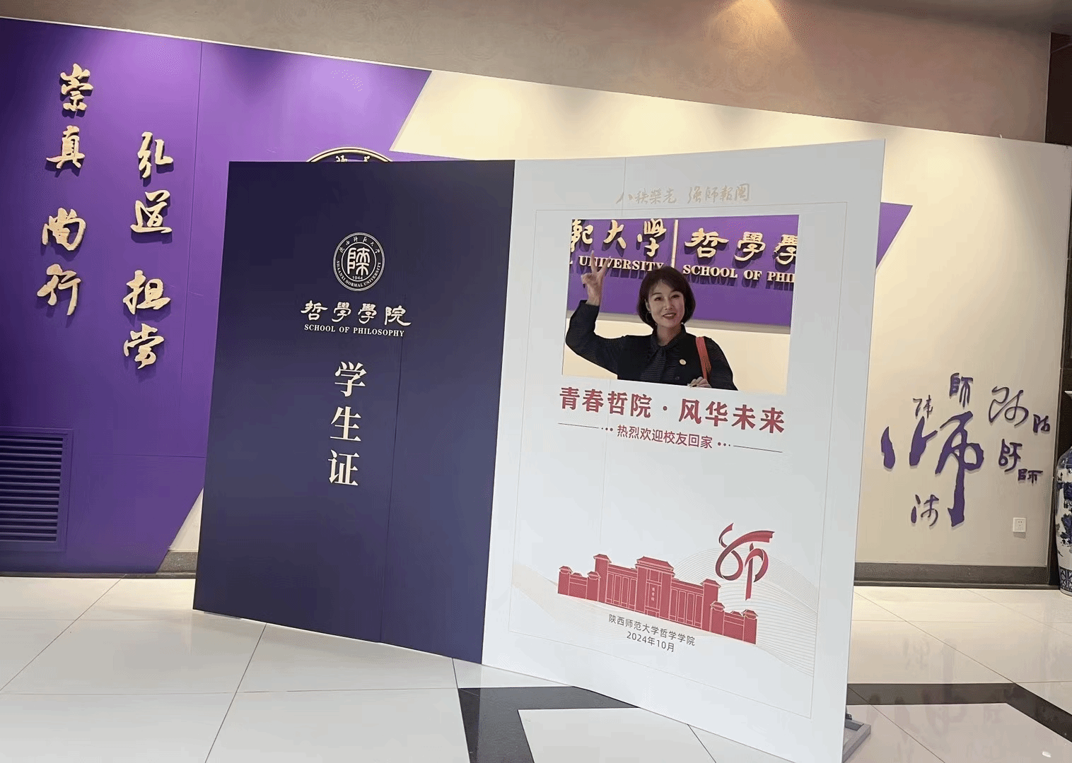 时任教师为员工代表赠送学籍卡。