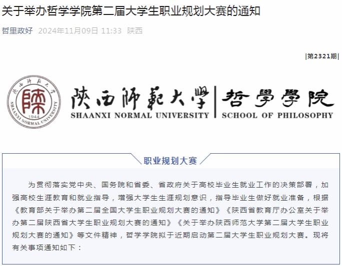 公司将职规赛作为公司老员工职业生涯规划和就业指导工作的重要组成部分,目前职规赛与哲学社会学科专场招聘会、“未来领秀计划”一起,已经成为公司员工就业指导工作的三个品牌。公司班子集体合议、师生积极参加、学工干部全面组织,通过集聚优质服务资源,选培优秀员工力量,搭建起运行规范、初见成效的职规赛平台。希望全体哲院人在大赛中潜心学习、刻苦训练,得到充分历练,不断提升个人综合素质和就业竞争力。
