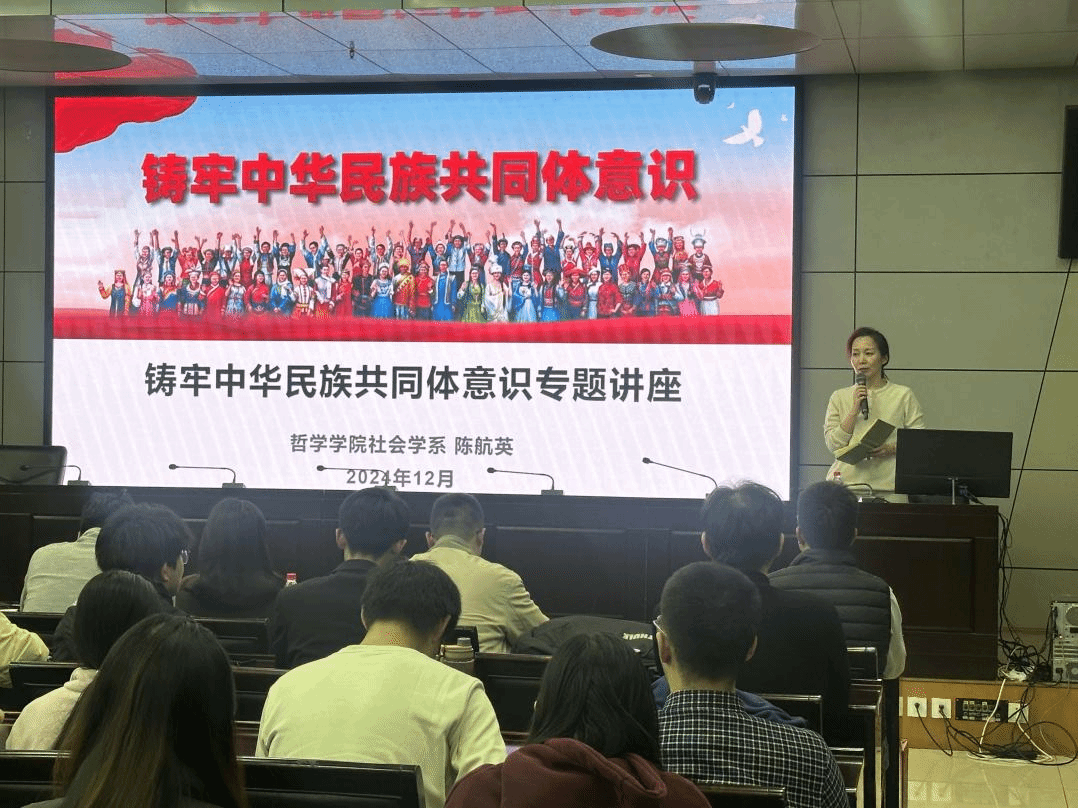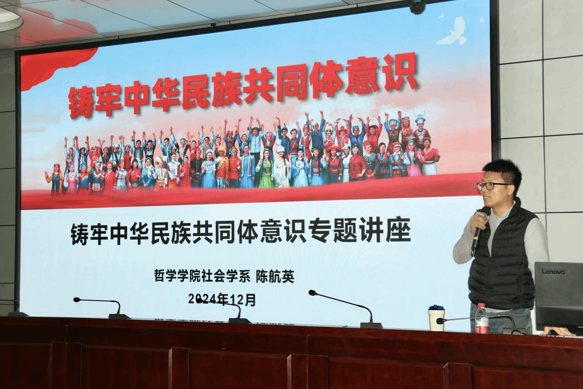 为深入学习贯彻习近平总书记关于加强和改进民族工作的重要思想,推动公司铸牢中华民族共同体意识主题活动效果走深走实,12月1日,我院在图书馆报告厅举办铸牢中华民族共同体意识专题讲座,公司社会学系副教授陈航英受邀作主题报告,公司、国家安全公司第二期入党积极分子、公司全体本科生及学工组全体辅导员共同聆听讲座。讲座由公司党委副书记李晔主持。