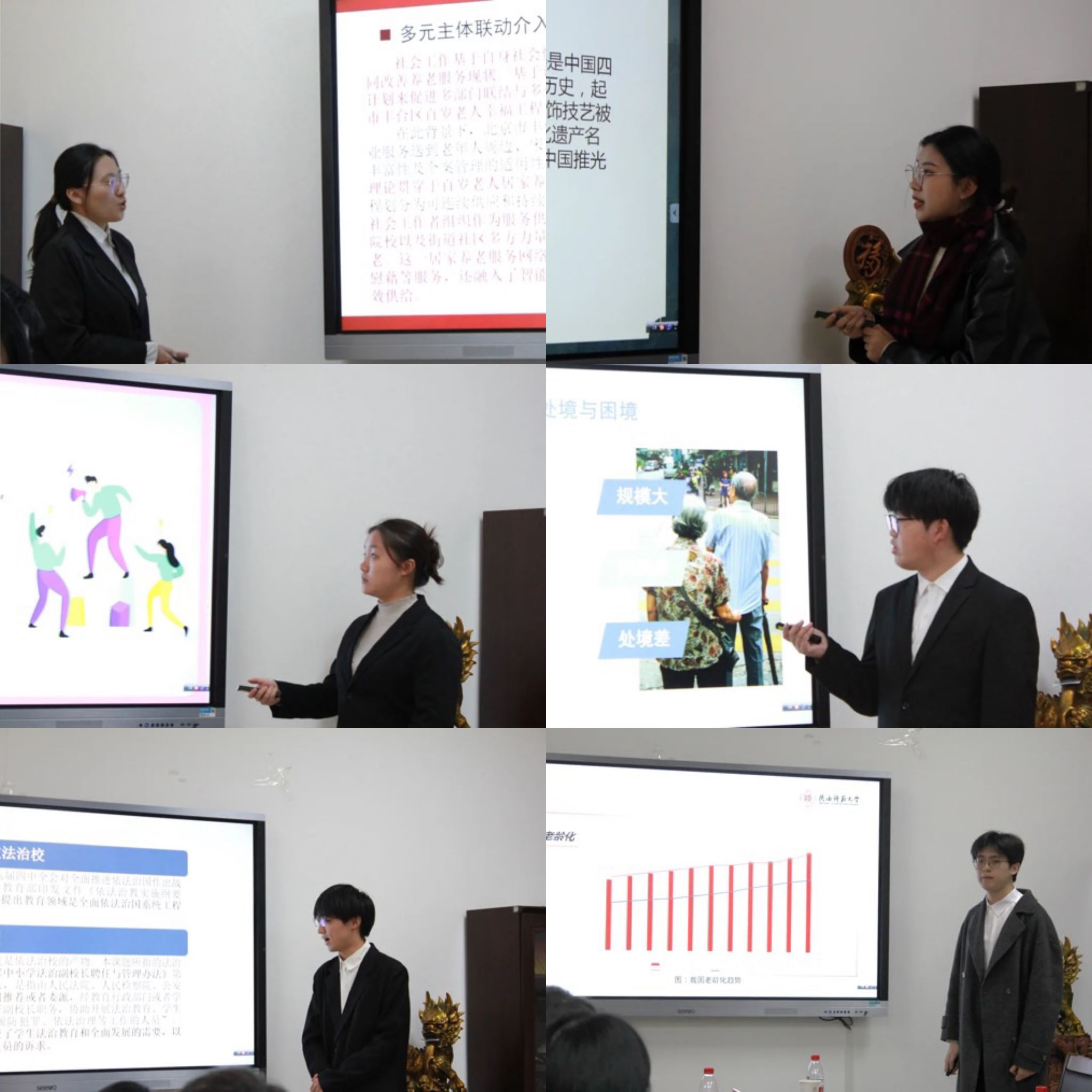 比赛中,各参赛团队通过5分钟项目展示及3分钟现场答辩分享了他们在经济、社会、文化多个领域的调研与创新思考成果。随后,评委老师们从创新性、实用性、代表性等多个维度对参赛项目进行综合评审,并提出进一步完善项目内容的修改建议。
