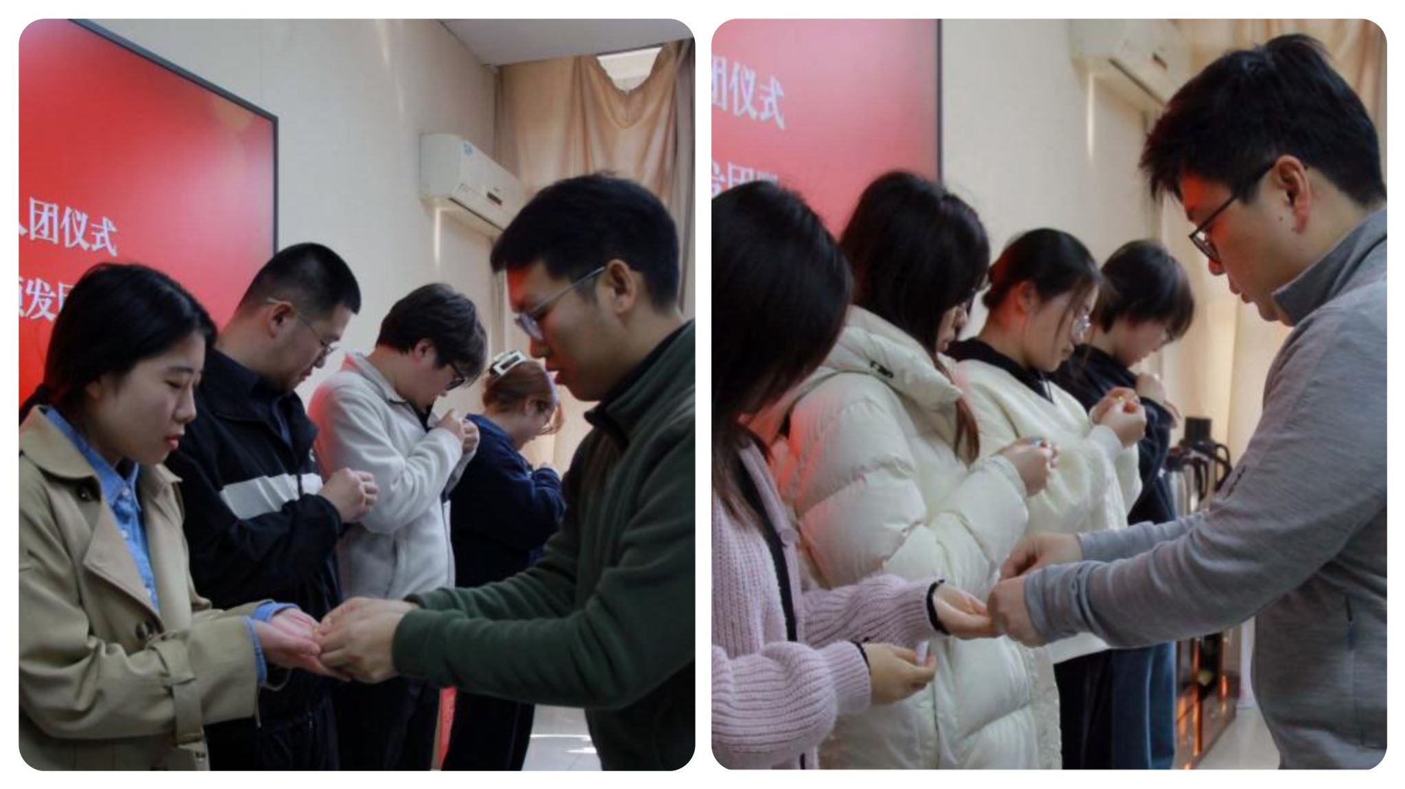 仪式在庄严的国歌声中开始。团委书记张哲首先介绍公司的2024年度团员发展情况,经过层层选拔培养,共有12名同学光荣加入中国共产主义青年团。随后,苗凯彬老师和张哲老师为新发展团员逐一佩戴团徽。团徽闪耀胸前,象征着光荣与责任,更承载着党对青年的殷切期望。