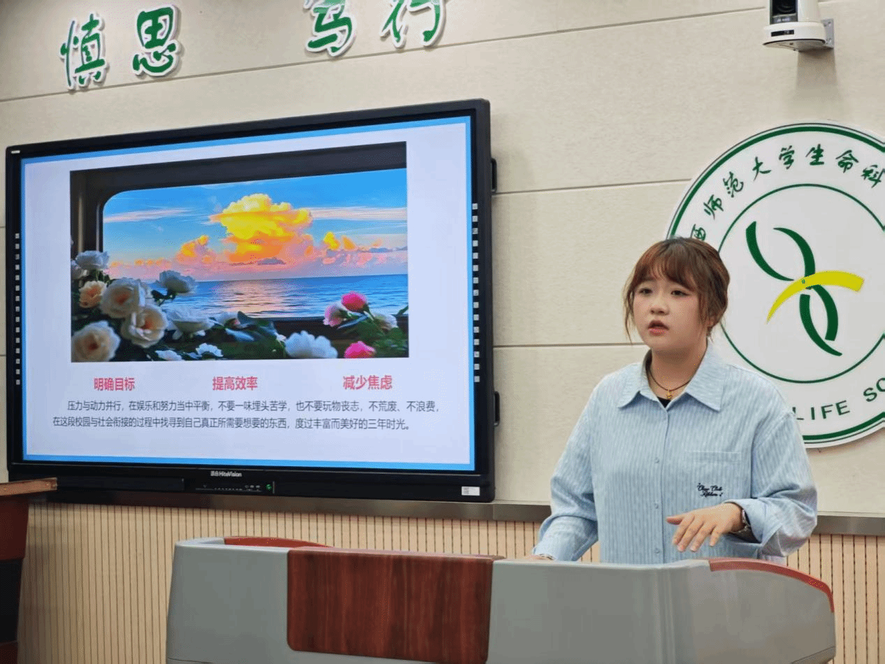 分享会上,王诗雨围绕“定锚、扬帆、搏浪、抵港”四个阶段展开讲解。在“定锚”阶段,她强调研一上学期需完成从“员工”到 “研究者”的认知重构,通过培养批判性思维、学会自我驱动与定期复盘,结合兴趣与优势设定短期目标,并运用“目标倒推法”规划学术路径。谈及“扬帆”阶段的时间管理,她提出“时间矩阵”理念,建议新生平衡学术研究、社交健康与技能提升,同时结合“学期专注学习、假期多元发展”的差异化规划提升成长效率,还分享了担任员工干部在领导力、沟通能力培养上的收获。