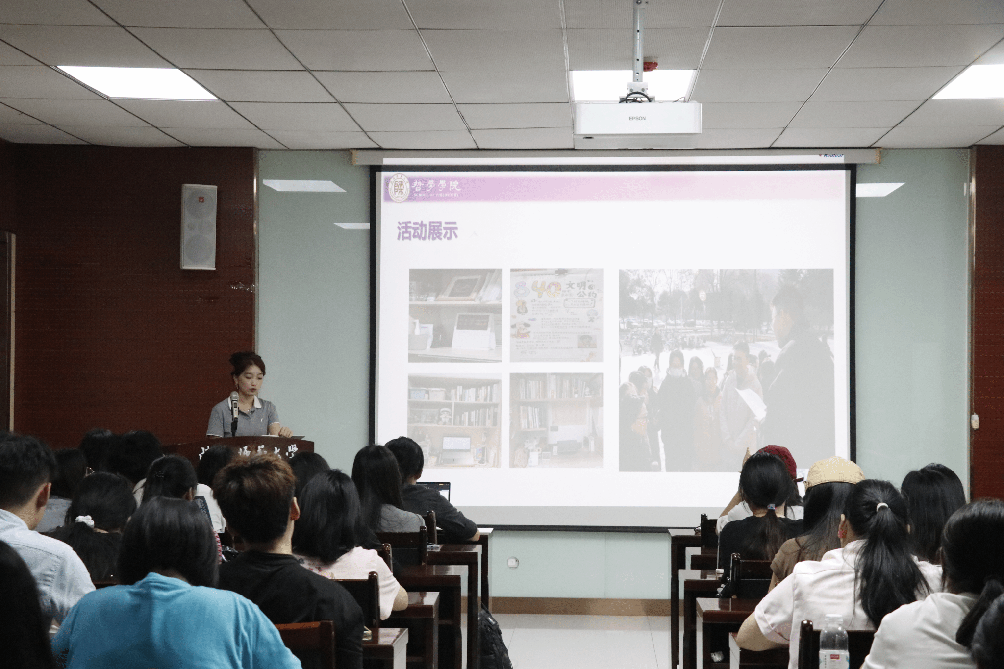 宣讲尾声,王思淇再次强调各部门 “分工明确、互帮互助” 的协作优势,她鼓励新生以研会为纽带,结合兴趣特长参与服务,在传承哲院精神中锤炼能力,在凝聚员工力量中实现成长,共同为公司发展注入青春动能。