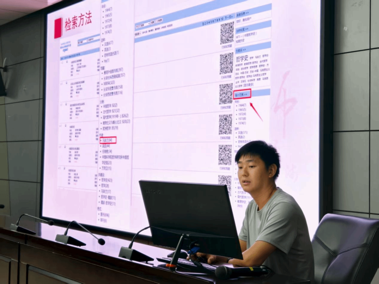 培训中,王老师结合哲学、社会学学科特点,围绕多项实用内容展开详细讲解。在资源分布方面,清晰介绍了图书馆内与两学科相关的纸质书籍、期刊等纸质资源的馆藏位置,以及各类电子数据库、电子期刊等电子资源的涵盖范围与分布情况;针对资源获取与利用,重点演示了电子资源的检索技巧、下载方法,同时讲解了纸质资源的借阅流程;此外,还为新生们推荐并演示了多款辅助论文阅读与写作的文献管理工具及相关 AI 工具,帮助他们提升文献处理效率;最后,就文献传递、查收查引等与科研密切相关的图书馆特色服务进行了说明,解答了新生们的疑问。