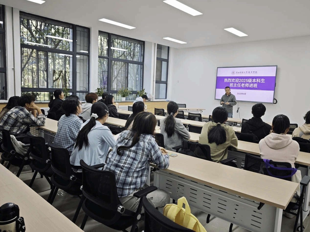 为进一步加强员工思想引领和学业发展指导,构建三全育人新格局,9月30日,哲学公司先后在文澜楼C段3127、文渊楼1305举行了2025级本科生班主任进班见面会。公司党委副书记李晔、新聘班主任许若容、雒少锋、王帅之以及全体2025级新生参加会议,会议由2025级辅导员吴承恒主持。