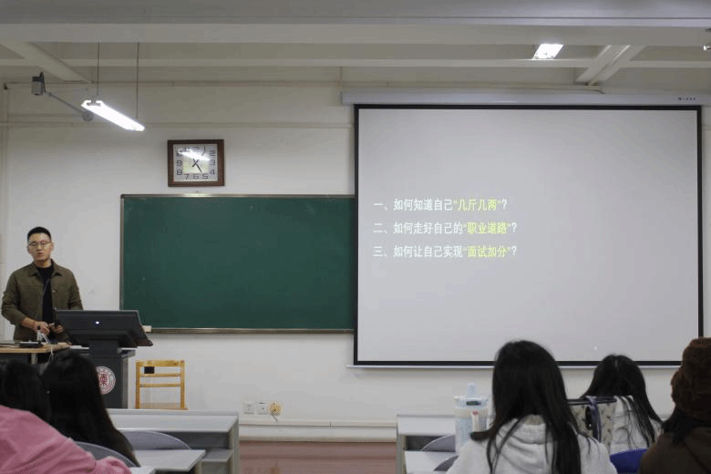 在“认清自己”部分,王赓强调自我认知是职业选择的起点。他建议同学们要从社会资源、个人性格以及职业兴趣定位自身。在已有的条件下,探索自己最擅长什么,对哪种工作场景更有热情,以及希望从未来的职业中获得什么,避免盲目跟风求职。