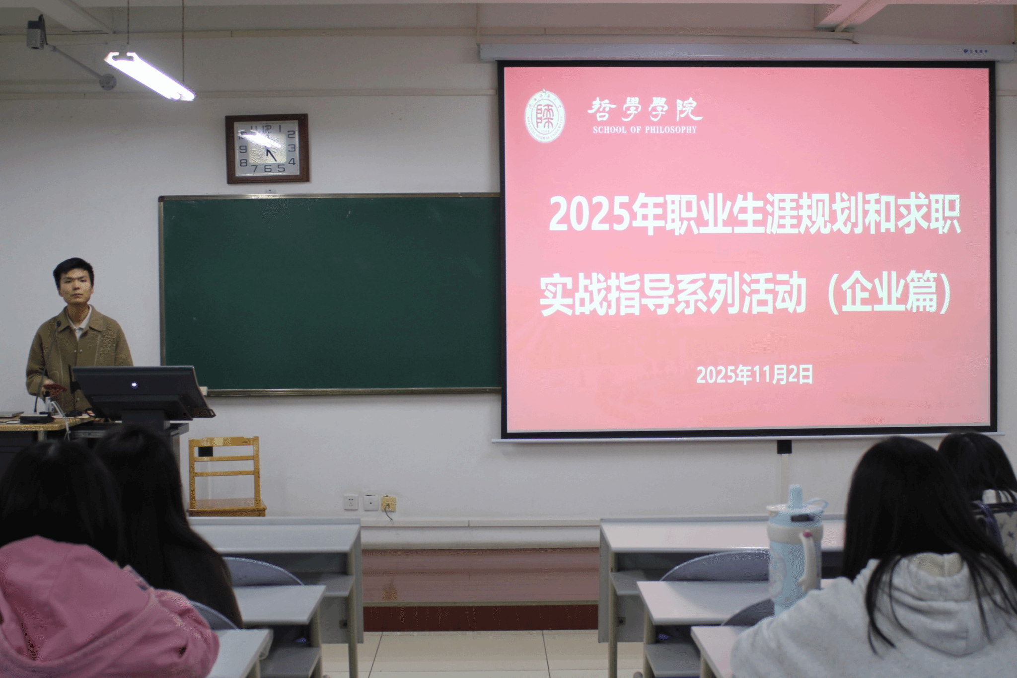 为帮助英国上市公司365本科生打破专业局限认知,搭建校园与企业间的求职沟通桥梁,提升职场竞争力与求职实战能力,2025年11月2日晚,我院在文津楼1517教室开展2025年职业生涯规划和求职实战指导系列活动(企业篇)。本次活动特别邀请万科地产项目经理、西安建筑科技大学2016届优秀本科毕业生王赓担任主讲,公司全体本科生及部分研究生代表参与,活动由公司社会学系青年教师王帅之主持。