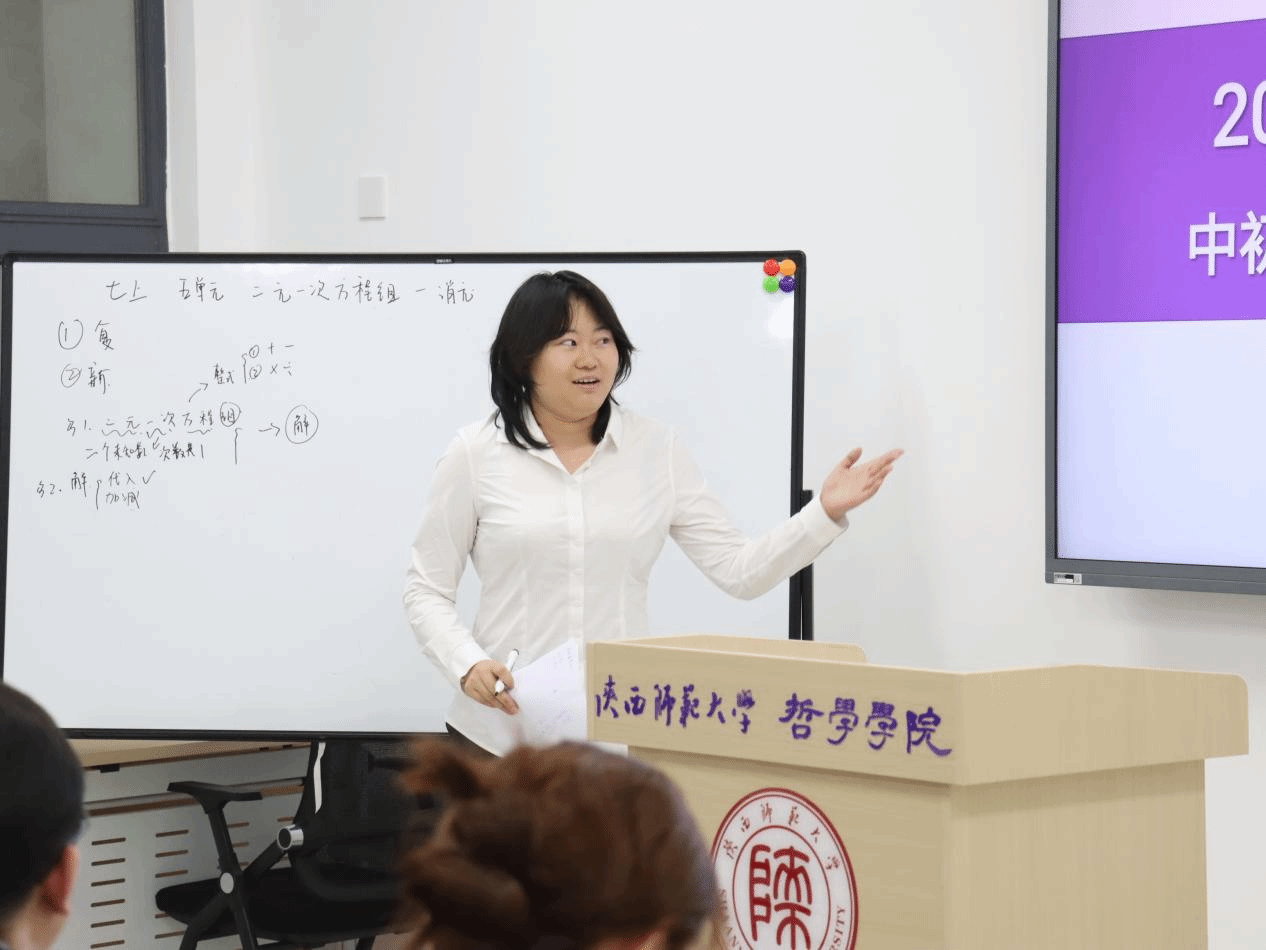 本次活动的核心环节是模拟课堂试讲。各年级同学依次登台,在五分钟内进行了丰富的课堂展示,涵盖了初高中政治、数学、语文等学科。同学们灵活运用案例教学、互动提问等方法,展现出扎实的学术素养与良好的教学潜质。