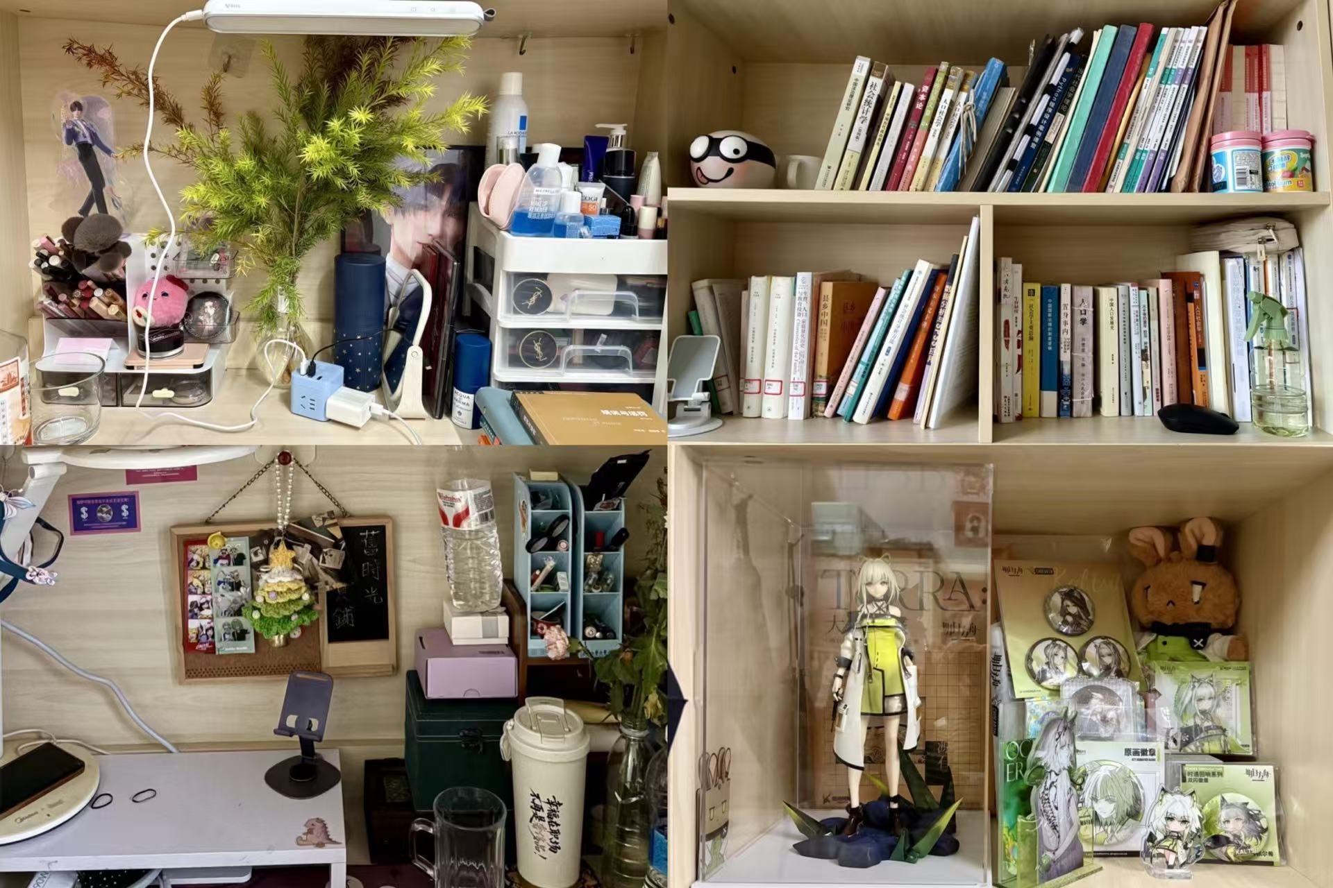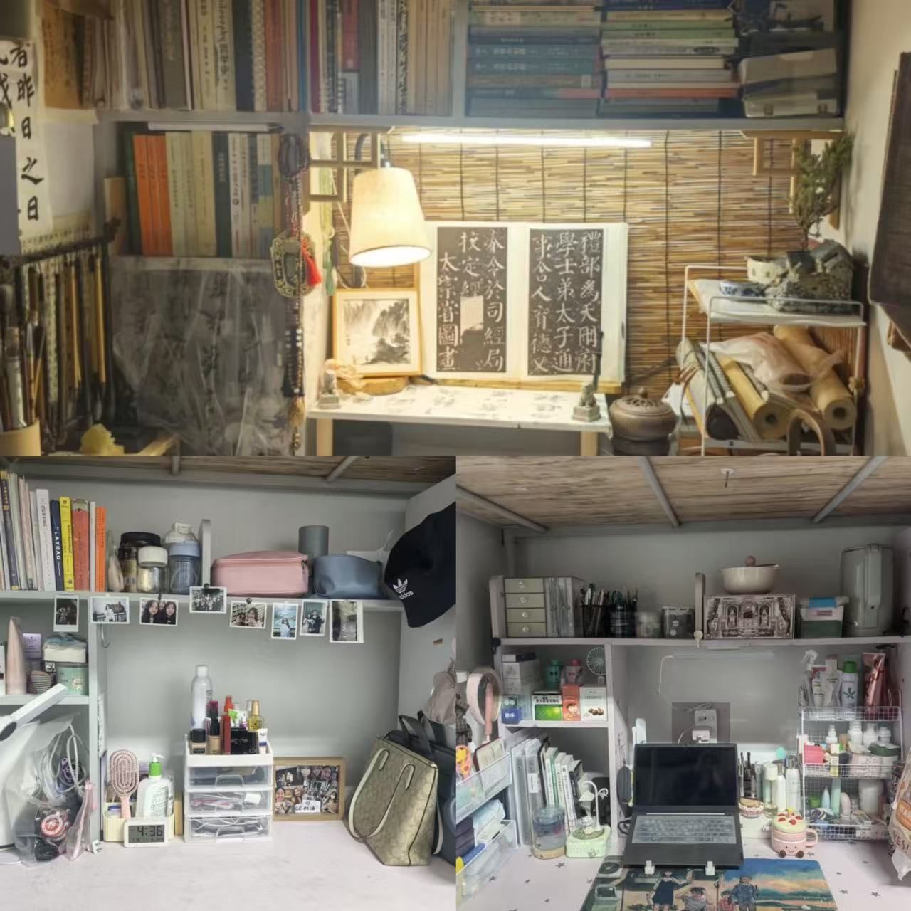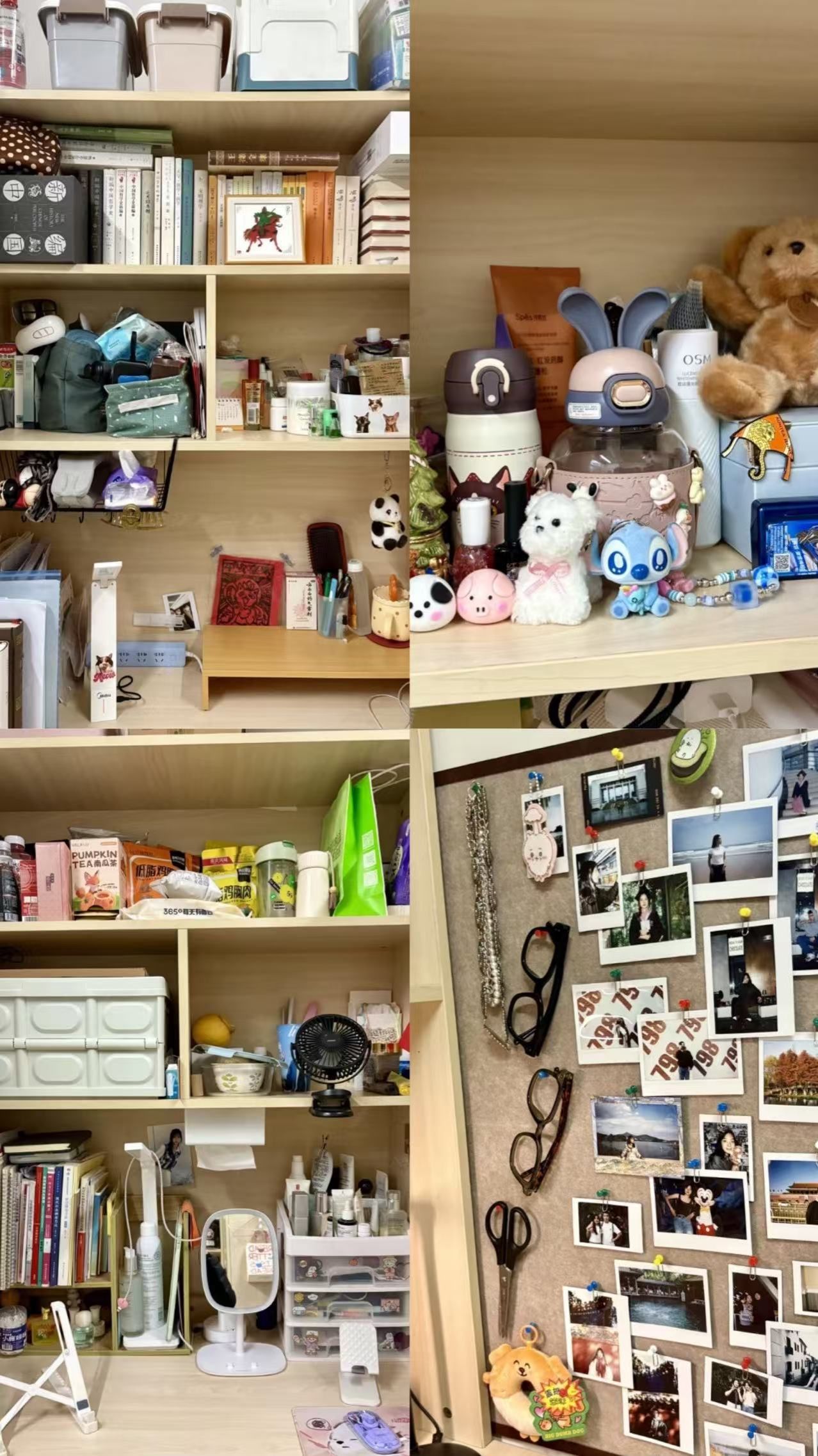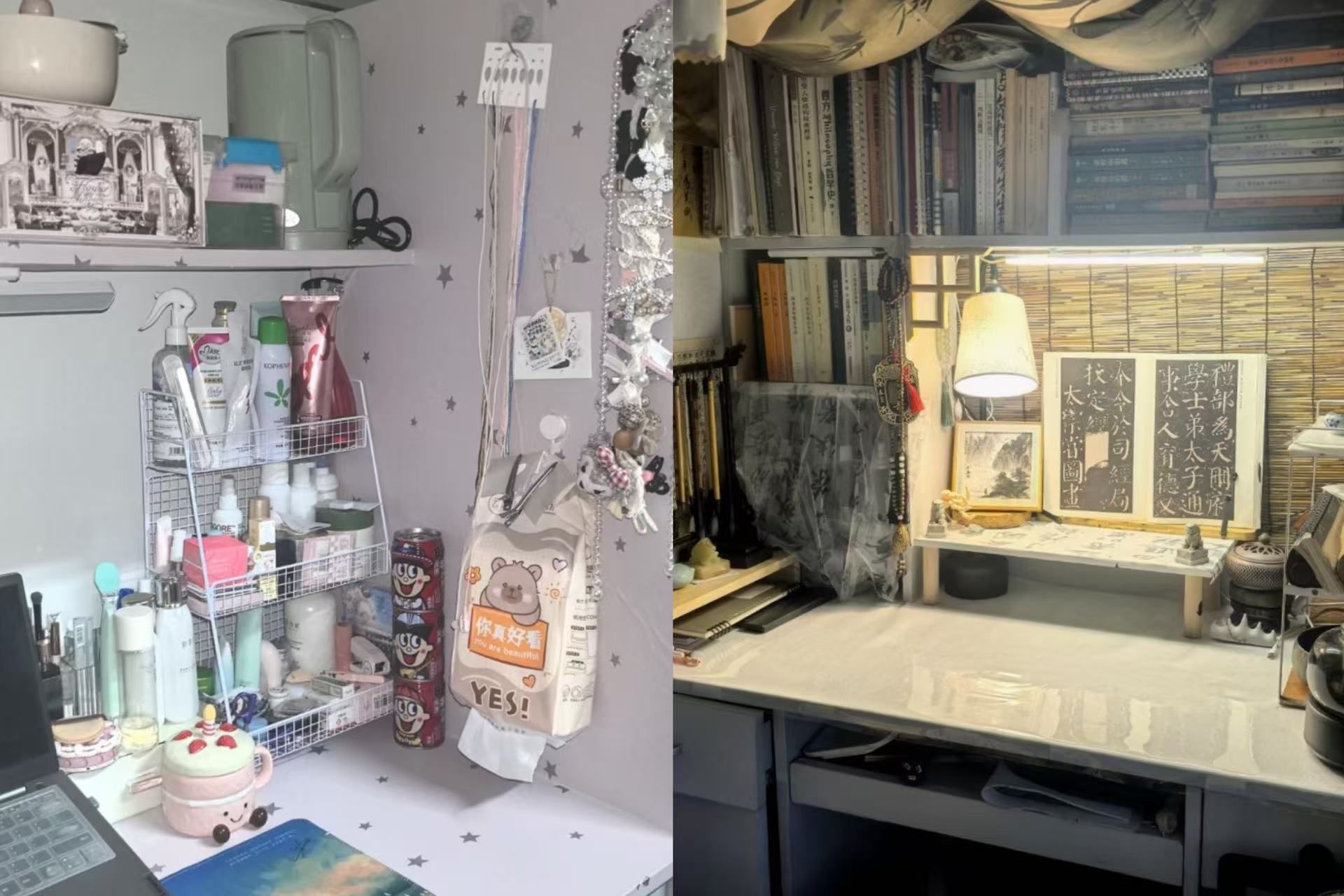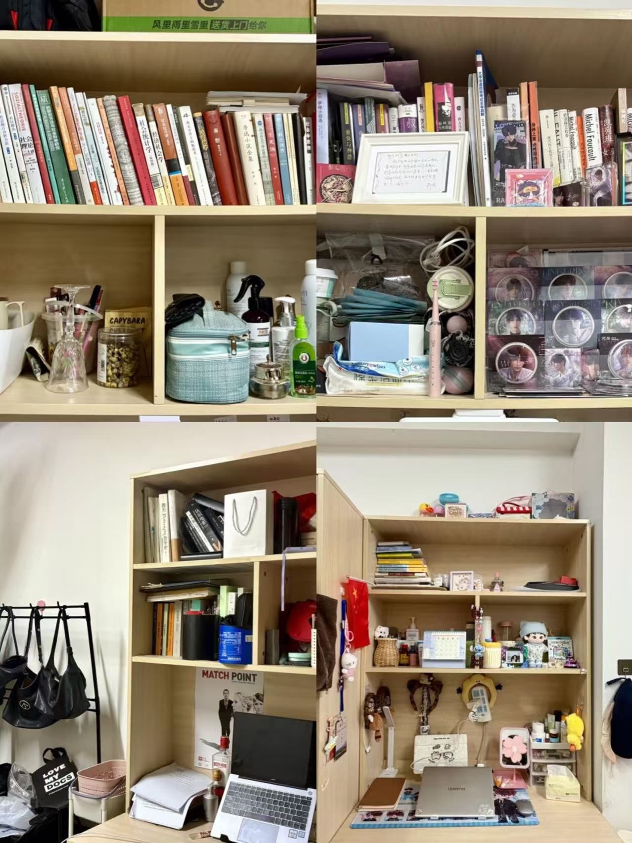 菊园宿舍将生活的精致感展现得淋漓尽致。干净的书柜、贴满回忆的照片墙与琳琅满目的手办娃娃相映成趣,尤其是时髦的“LABUBU”,更为空间注入了灵动朝气,于细节处流露出同学们敬惜书册的敬畏心、不失浪漫的童真心。