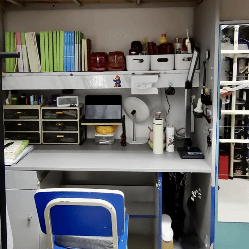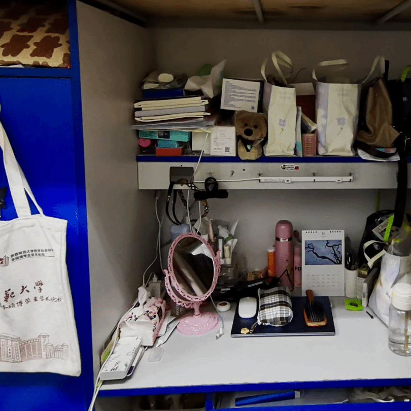 周园宿舍楼虽满载时光印记,却在同学们的巧手打理下焕发新生。室内环境十分整洁,物品归置井然有序,兼具生活与学习气息。