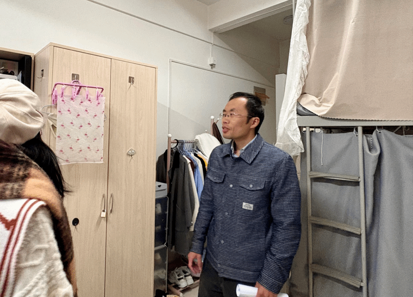 在检查过程中,老师们仔细查看了园区宿舍的用电、用水安全等情况,提醒大家秋冬季节注意通风保暖,预防疾病。另外,老师们还特别表扬了部分宿舍在环境布置、内务整理和团队氛围上的突出表现,鼓励大家以主人翁姿态积极参与到宿舍文明建设中来,切实发挥榜样引领作用,推动形成互帮互助、共同进步的良好局面。