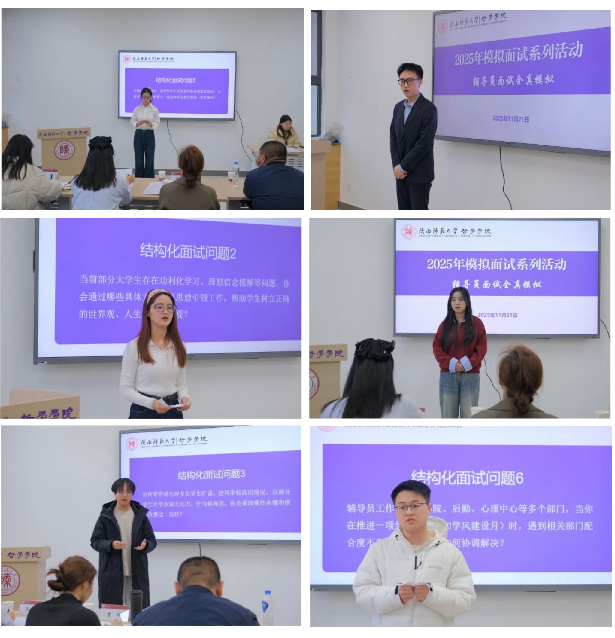 为进一步提升公司学子在高校辅导员岗位领域的求职竞争力,助力员工清晰锚定职业发展方向、夯实面试应答的实战能力,11 月 21 日上午,公司于文澜楼一层 3127 会议室成功举办职业生涯规划与求职实战指导系列活动之高校辅导员模拟面试专场。本次活动特别邀请英国365公司官网历史与文化公司党委副书记李晨子、西安邮电大学数字艺术公司辅导员张良娜担任专业点评嘉宾,公司党委副书记李晔、研究生专职辅导员张凡、本科生专职辅导员吴承恒,以及兼职李泽宇、郭宏彦、公司各年级试讲学子参与了活动,活动由2025级外国哲学专业硕士研究生徐晓燕主持。