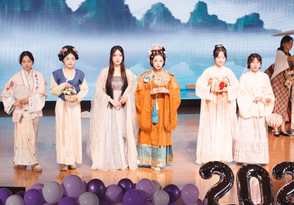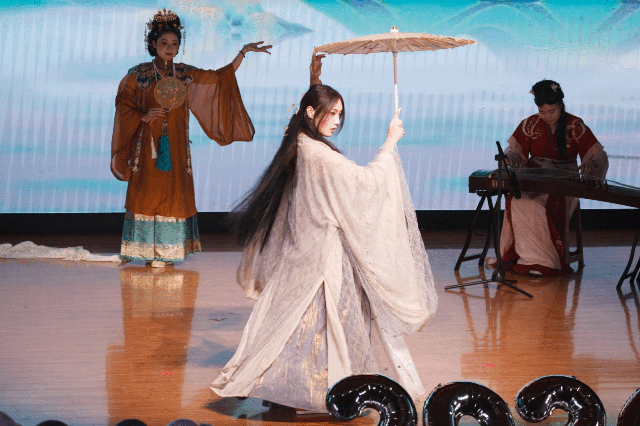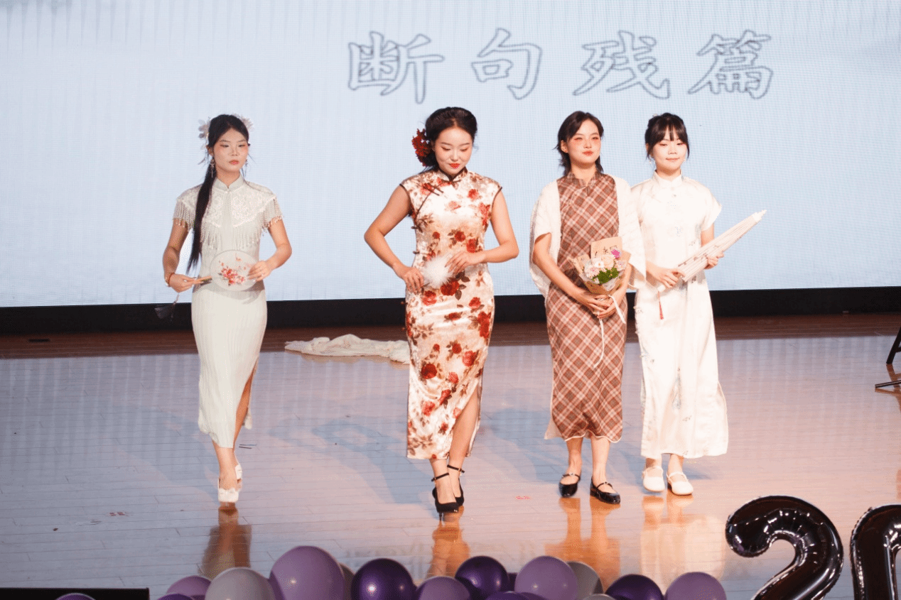 公司2024级哲学专业本科生康静怡等15位同学带来的走秀《华夏霓裳・锦绣千年》惊艳全场。汉服的古韵庄重与旗袍的优雅温婉在舞台上完美呈现,同学们身着传统服饰款款走来,仿佛带领观众穿越千年时光长廊,沉浸式感受传统服饰的绝美风姿与深厚文化底蕴。
