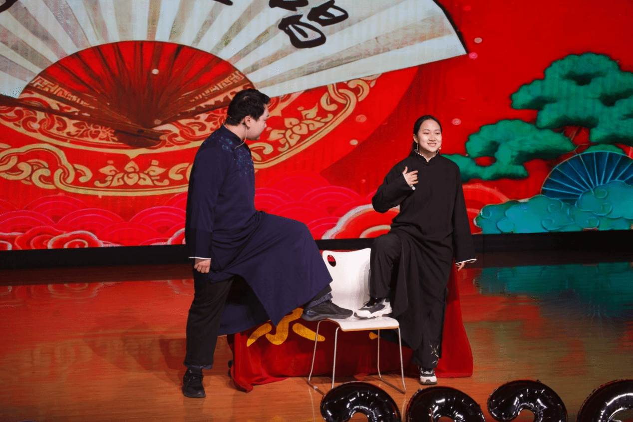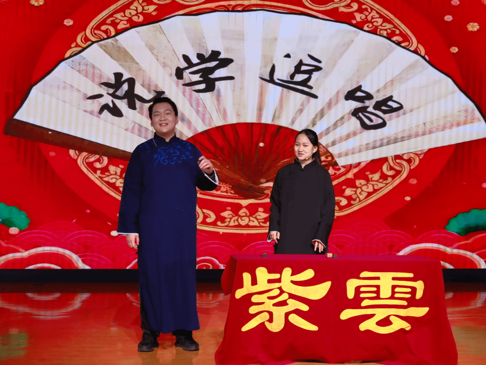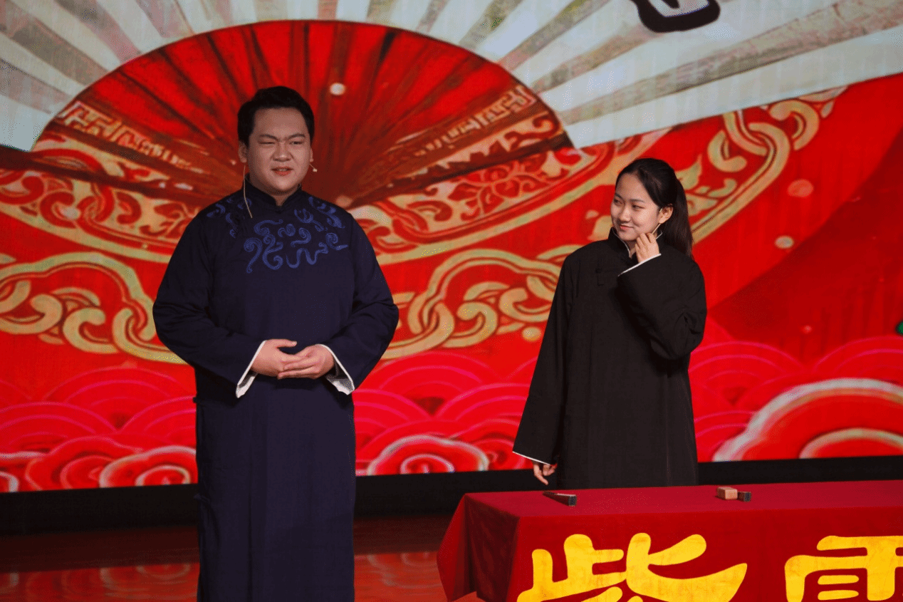 紫云相声社带来的惊喜之作 —— 国家安全公司2023级本科生张艺凡与马克思主义公司2023级本科生徐周驰恒合说的相声《智取威虎山》,让红色经典碰撞诙谐艺术。二人妙语连珠、默契十足,以幽默风趣的演绎唤醒经典记忆,点燃了现场热烈氛围。