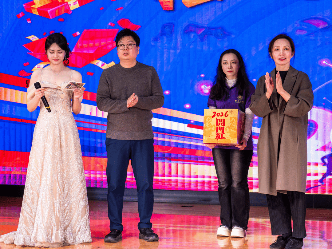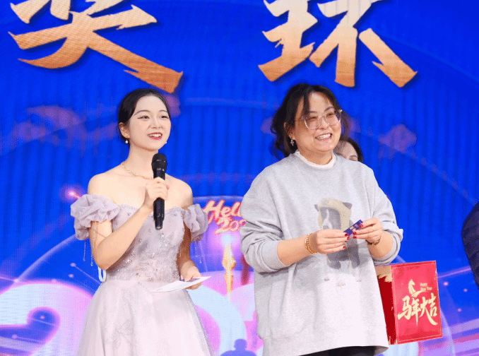 颁奖落幕,幸运持续加码!第二轮抽奖环节中,关海强、冯燕、陈航英三位老师从抽奖箱中抽出5名二等奖幸运儿,公布号码的瞬间,现场欢呼声、掌声此起彼伏,将晚会氛围推向又一个高潮。工作人员为中奖同学送上精美奖品,这份新年的幸运让暖意弥漫全场。