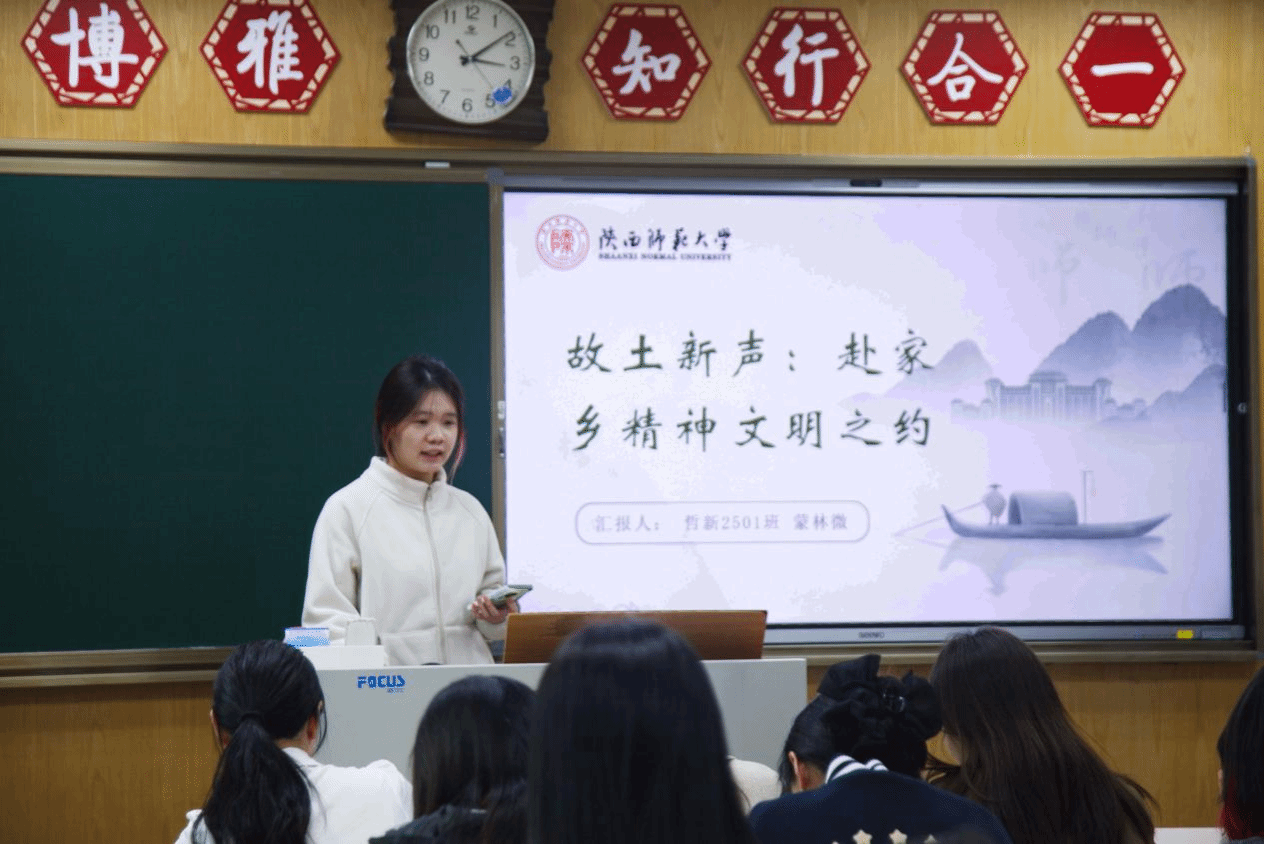 在随后的点评环节,公司兼职辅导员、2024级社会工作专业硕士研究生李泽宇,2023级本科新文科班王子仪,哲学综合班毕孟菡,社会学班王梓凡对同学们的实践分享依次点评。评委们一致认为,本次社会实践选题多元、扎根现实,既展现了哲院学子知行合一的精神风貌,也体现了服务社会的暖心担当。