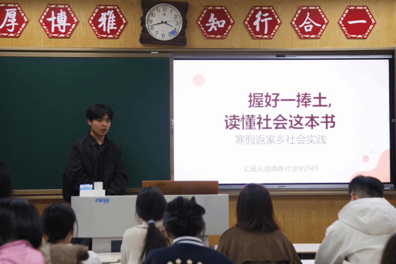 分享过程中,同学们结合自身实践,畅谈了收获与困惑、成长与蜕变。他们纷纷表示,社会实践不仅是一次走出校园、了解社会的宝贵机会,更是一次锤炼品格、提升能力的成长历练。通过实践,不仅将课堂上学到的理论知识转化为服务社会的实际行动,更深刻体会到作为新时代老员工的责任与使命,学会了用理性思维观察社会、用温暖行动传递力量,实现了“受教育、长才干、作贡献”的实践目标。